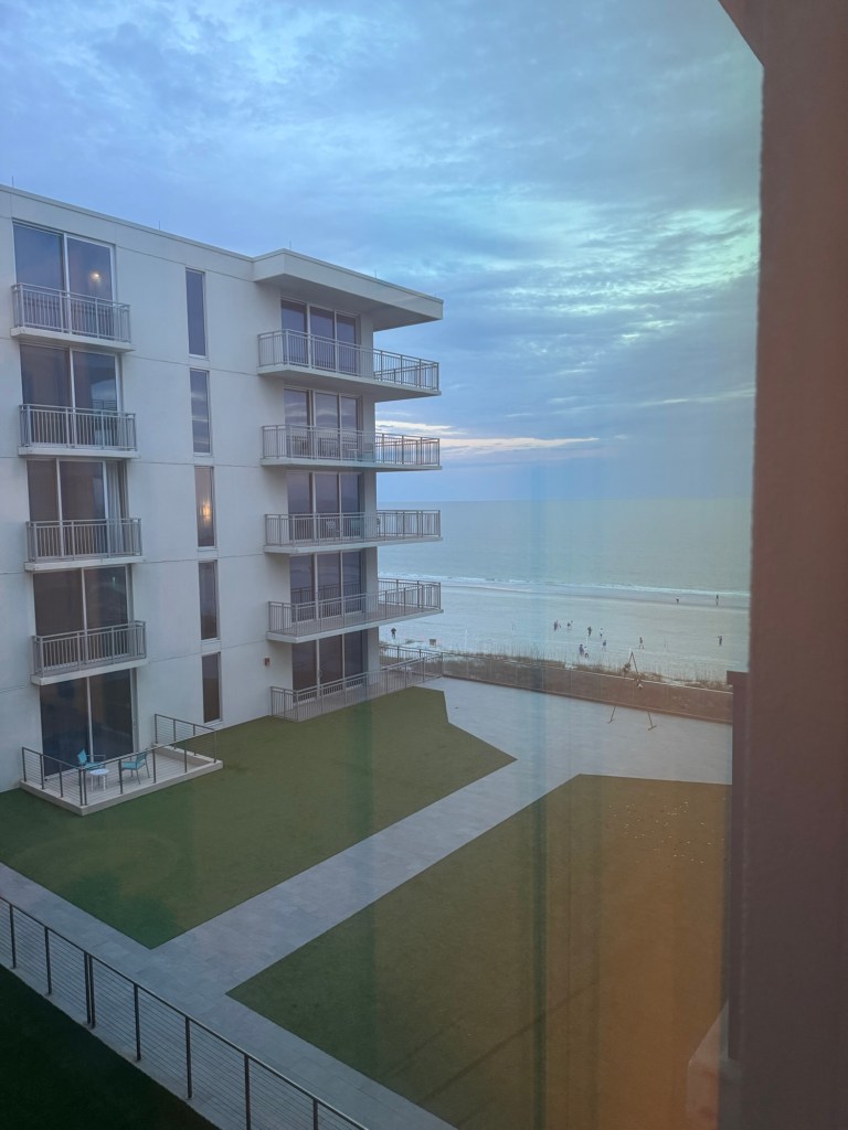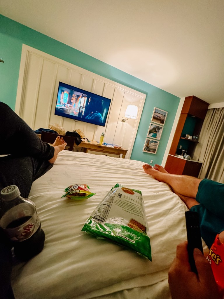 Because the weather was rainy and it was chilly outside, we didn’t get to take advantage of the beach or pool but we did enjoy the calm views and relaxing in bed while watching tv. We’re hoping for better weather next time we go.