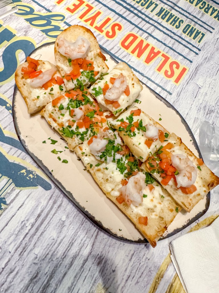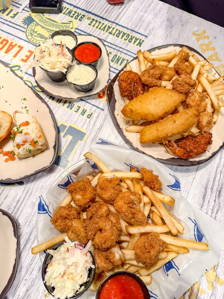 We had dinner at LandShark Bar and Grill, the in-house restaurant at Margaritaville. We had some delicious seafood, including the Shrimp Beach Bread, Fried Shrimp and the Seafood Platter. Everything was absolutely delicious, and the pineapple aioli they served with the shrimp was one of the best sauces I’ve ever had!