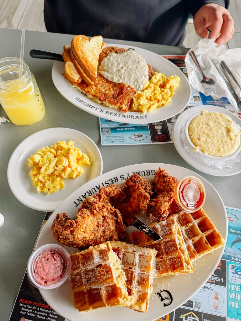 For breakfast the next day we drove a couple miles down the road to Grumpy’s, a delicious breakfast and lunch spot that gives off diner vibes. Their chicken and waffles is an absolute must order, along with their fresh-squeezed orange juice (which is actually fresh squeezed, we saw them doing it themselves!)